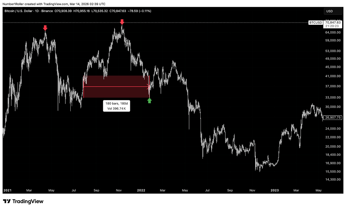 If we measure from the first major top in 2021, we arrive directly at April of this year as the first major candidate for a serious bottom.