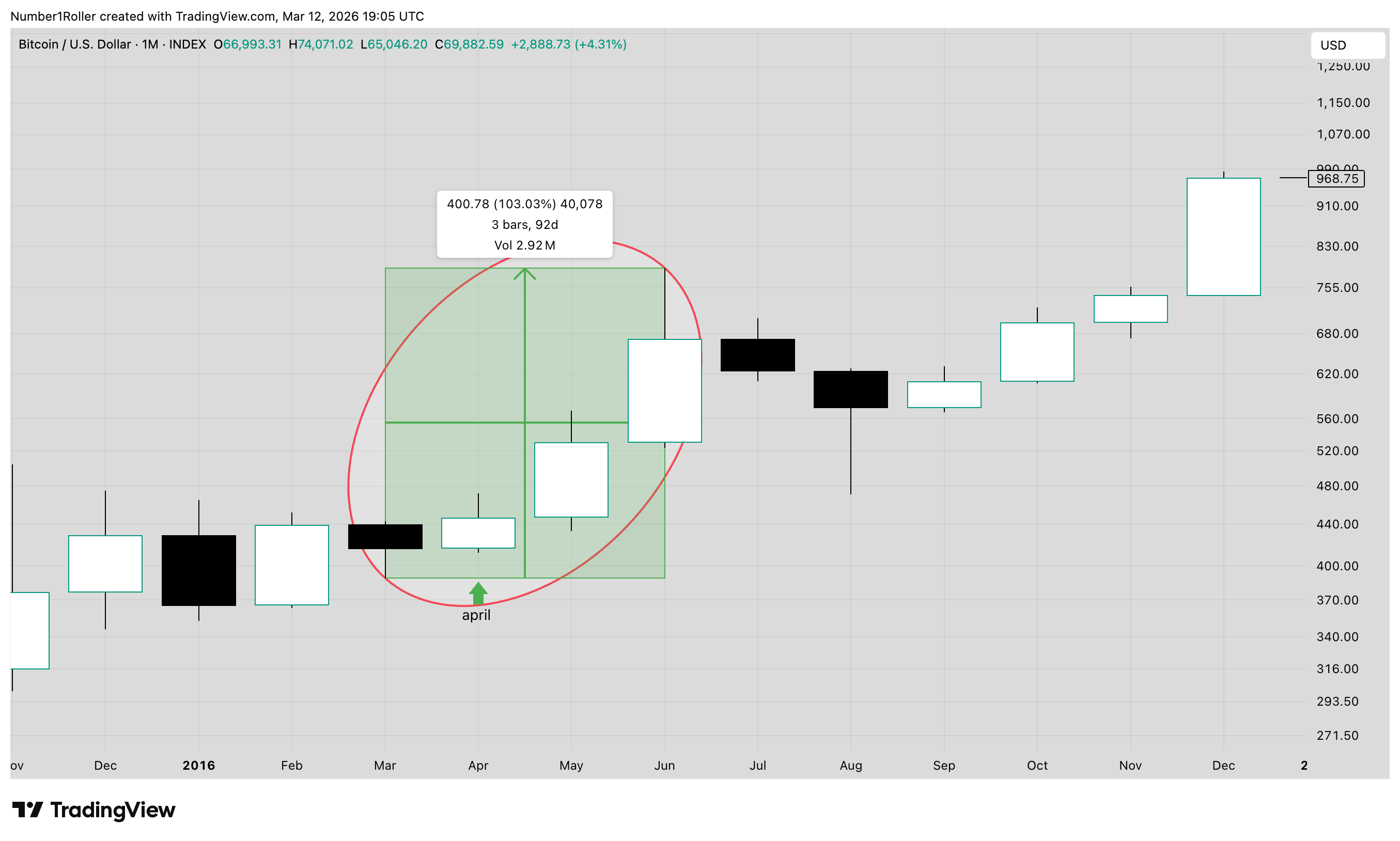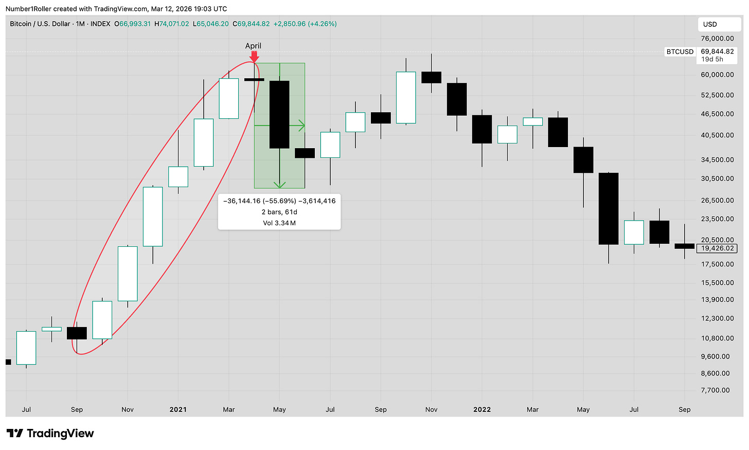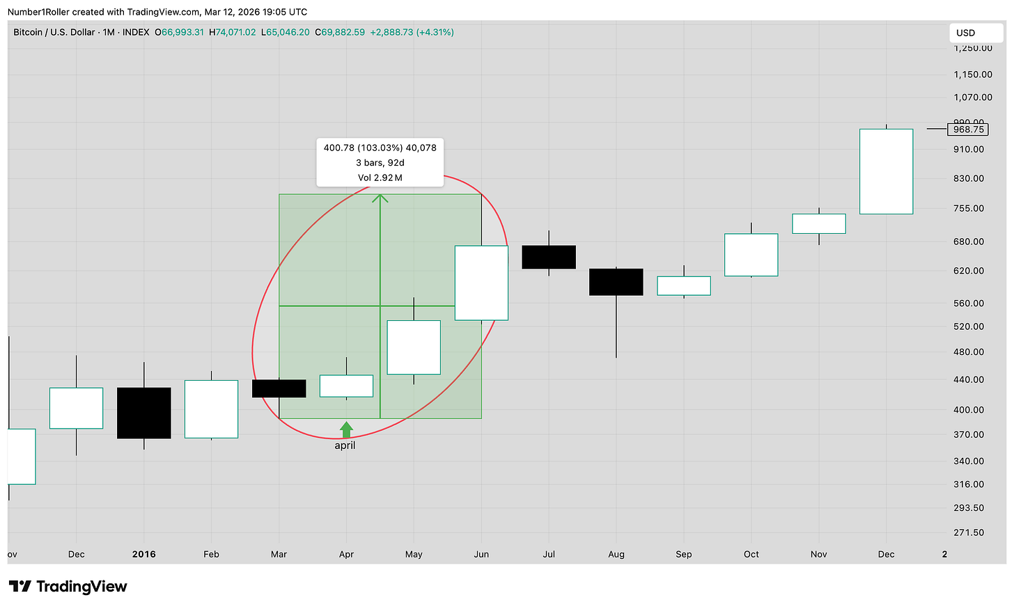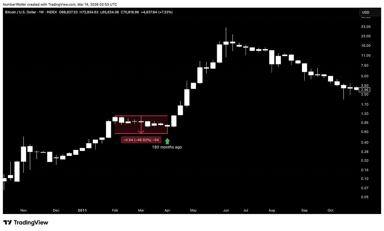 Bitcoin rallied for 35 months, just one month short of the full three years.