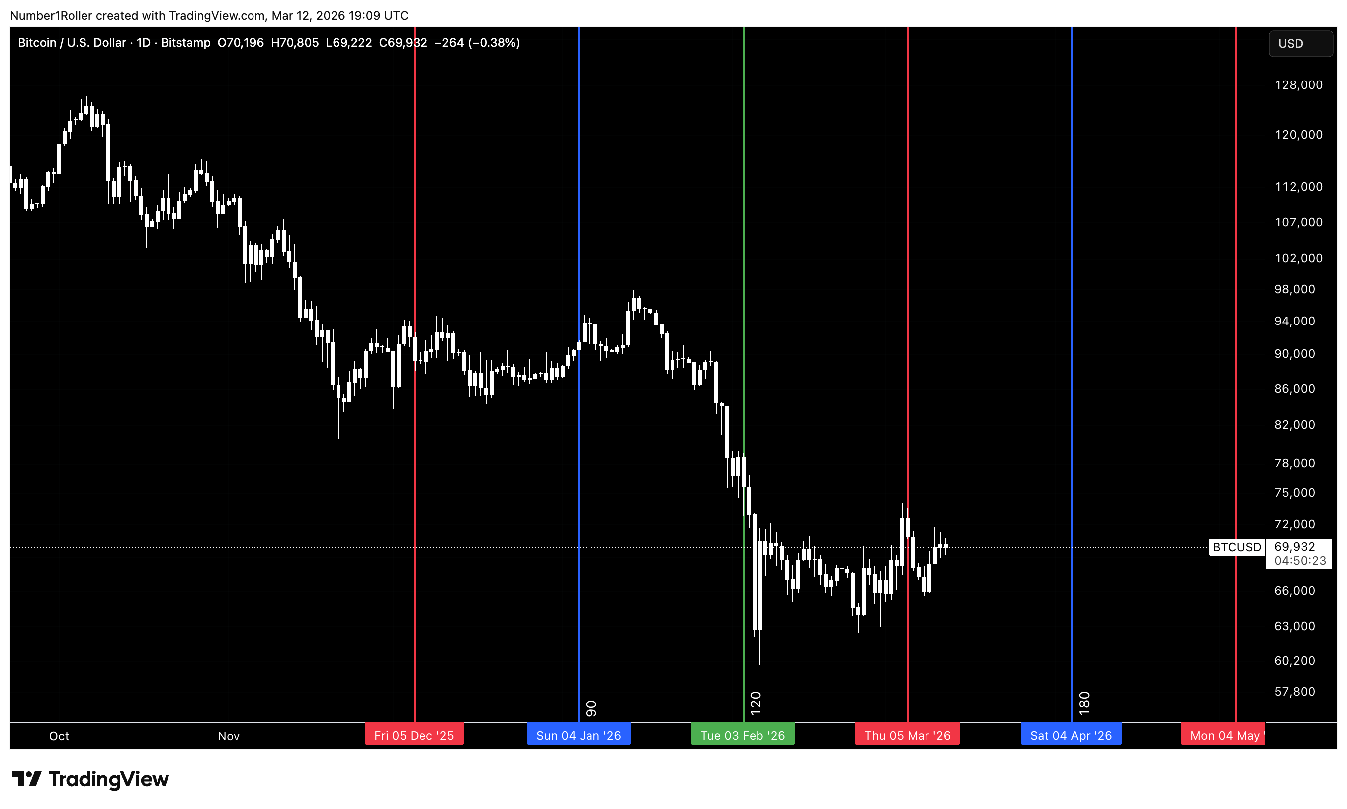 Using that method, the 180-day window has already appeared — and it did in fact produce a low and reversal in March.