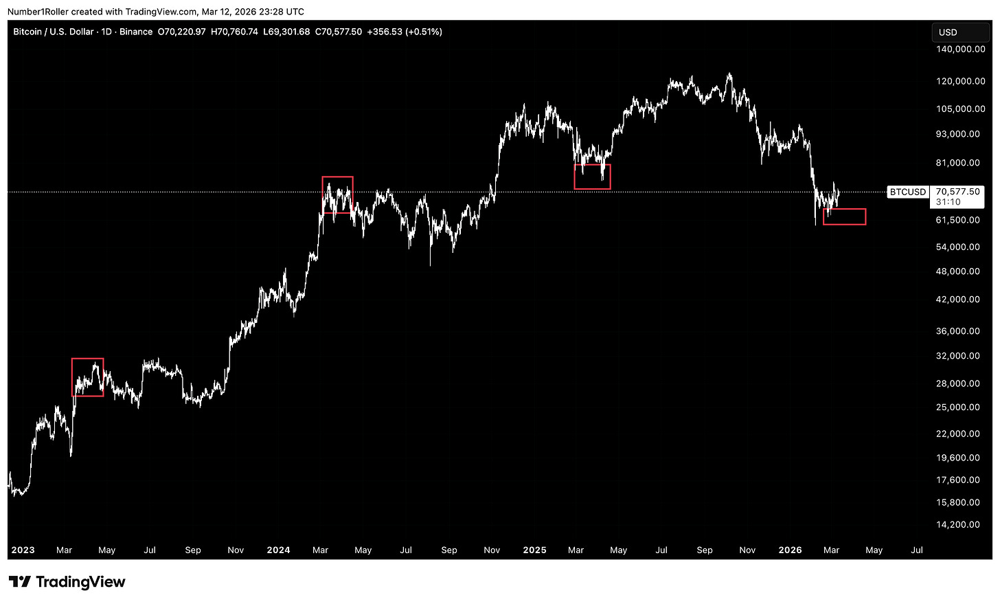 And if we look at the behavior of the market since 2023, each March–April window has produced a double move and reversal.